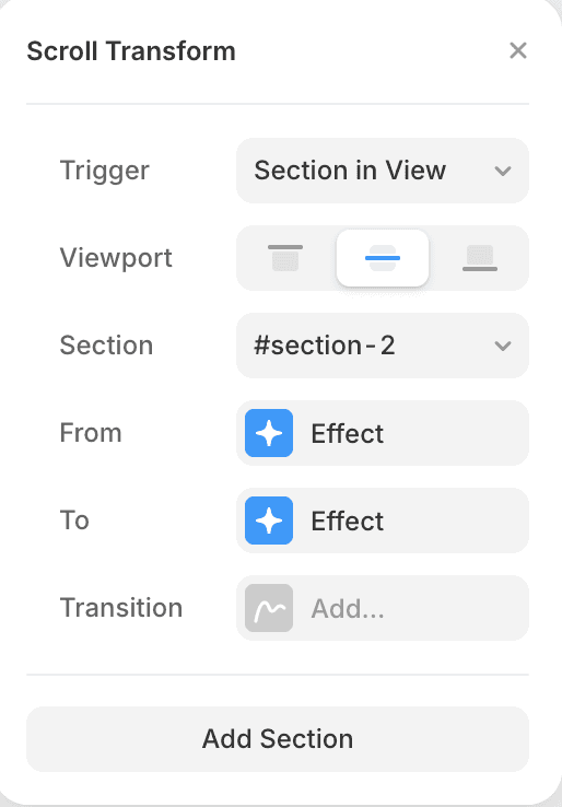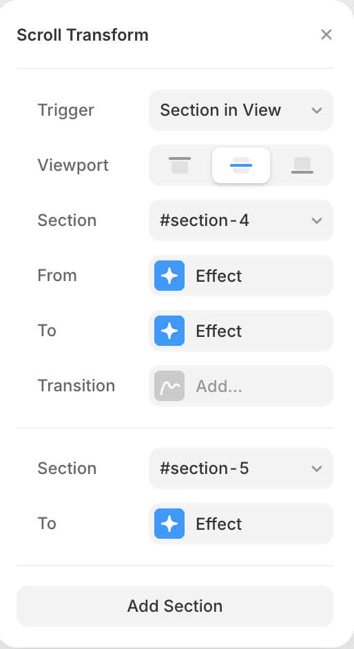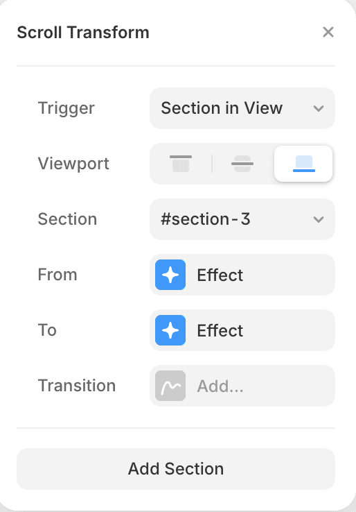 섹션이 화면 하단에 닿은 순간부터, 화면을 통과할 때까지 효과가 점진적으로 적용됩니다.